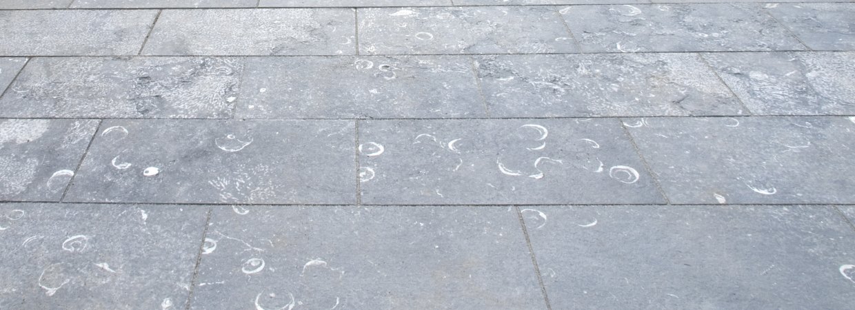 As a sedimentary rock formed over millions of years of pressure on the ocean floor it has captured fossilised plant and animal life within its structure, leading to its composition of the mineral calcite and the presence of silica, flint, sand and clay.